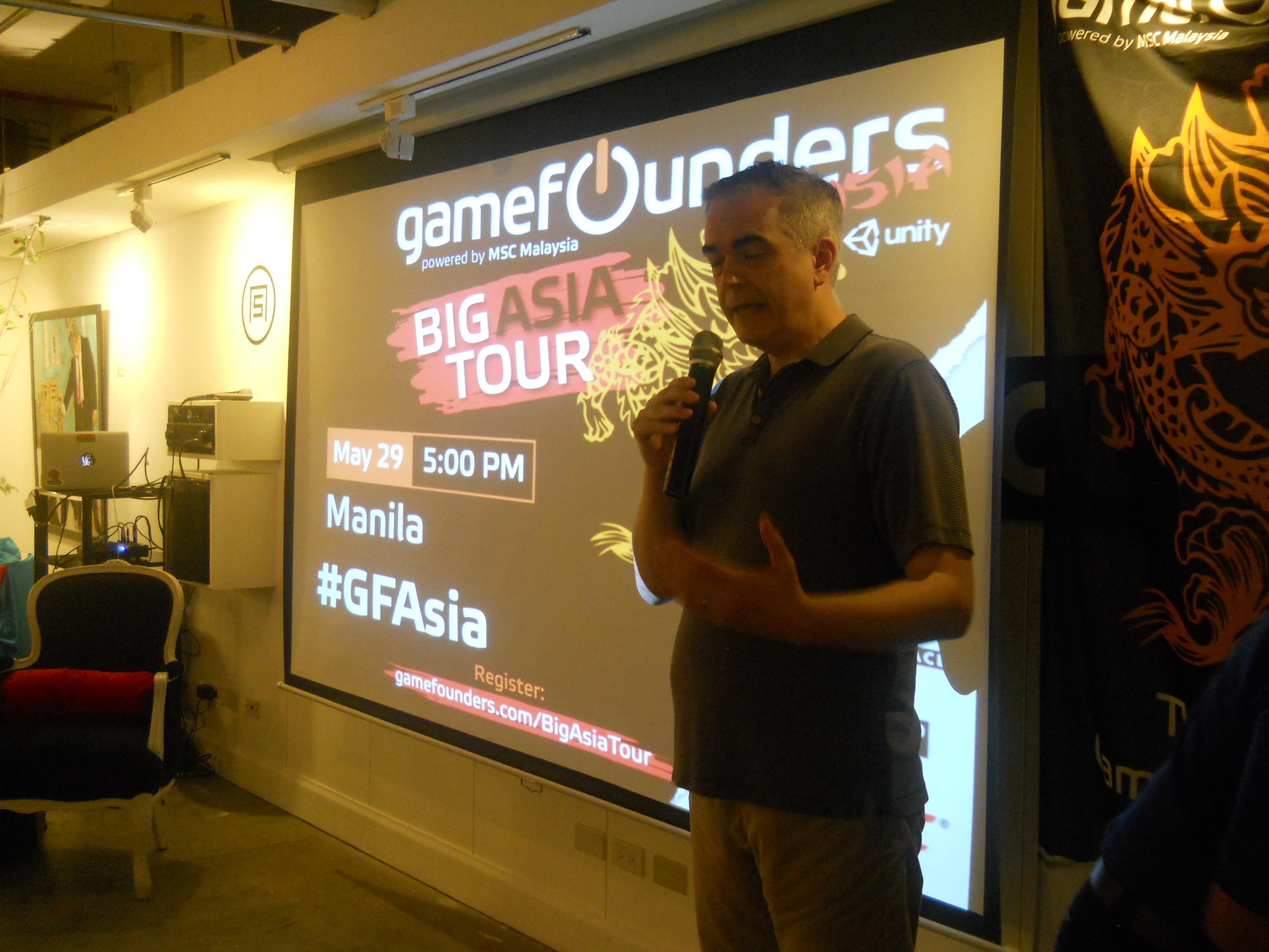 GameFounders, a group of people who as gone to different parts of the world to look for games and studios that would be given an opportunity to promote their games. Their goal is to propel games that are picked and give them the proper head start in the industry. They set a game pitch last May 29, 2015 in A Space 110 Legazpi Street, Makati as one of their destinations in their Asian Tour; the pitch was launched around 5 pm by Mr. Anthony Walker, COO and Partner at GameFounders. He talked about the pitches that was conducted in other countries and the progress of each of the previously selected games. He highlighted the previous attendees’ pitches goals and processes and described the steps the individuals took to attain the goals within their timelines. The next speaker was Mr. Sho Sato, Chief Analyst at Media Create; he gave us an insight on statistics of gaming in Japan. He also gave us tips on how we can get a good start in making games and how to make it a lasting game. There were two other speakers Mr. Siow Aik Wee of MDEC and Mr. Gabby Dizon, CEO and Founder of Attitude Games. The talk, presentation and socials ended around 8:30 pm.