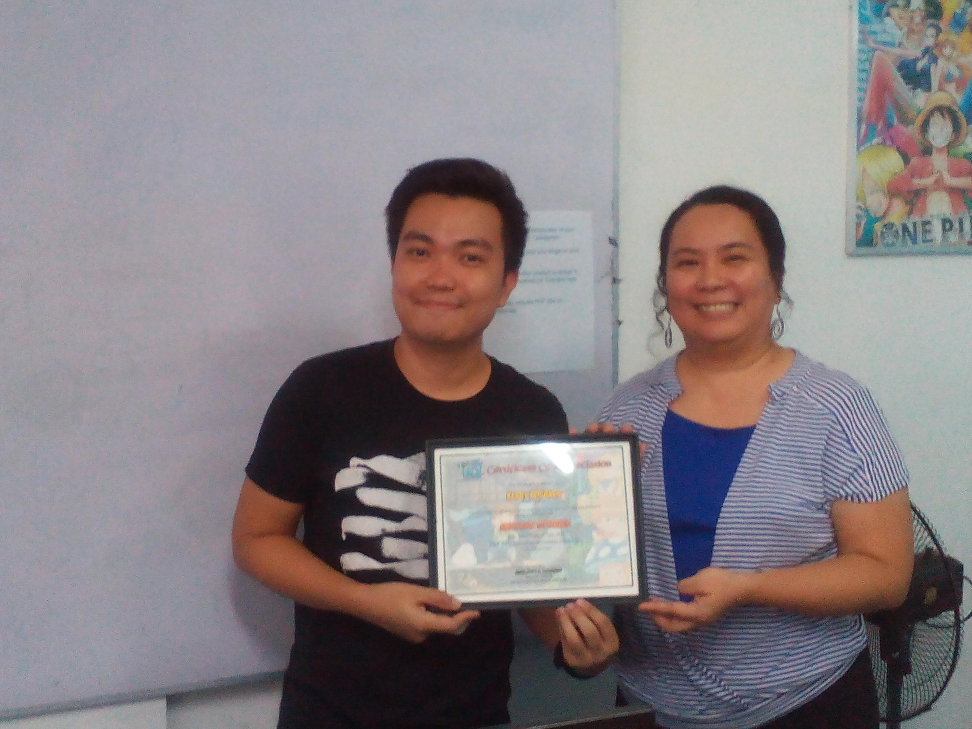 Kerby Rosanes is an internationally known Filipino dooodle artist whom Grace invited to speak to Top Peg artists, staff and students at the Top Peg Studio in Las Piñas last June 17, 2015 from 1:30 to 4:00 pm. Grace said that this was to inspire her artists and students as she was impressed with the way Kerby utilized all his knowledge, experience and talent in art and marketing to build a good career as a young artist. Kerby’s topic is about how to get work and be known using the Internet and social media. Grace met Kerby sometime last year as they were both invited speakers at the College of St. Benilde School of Design & Arts. As a token, Grace gave Kerby a certificate of appreciation, some gifts and honoraria.