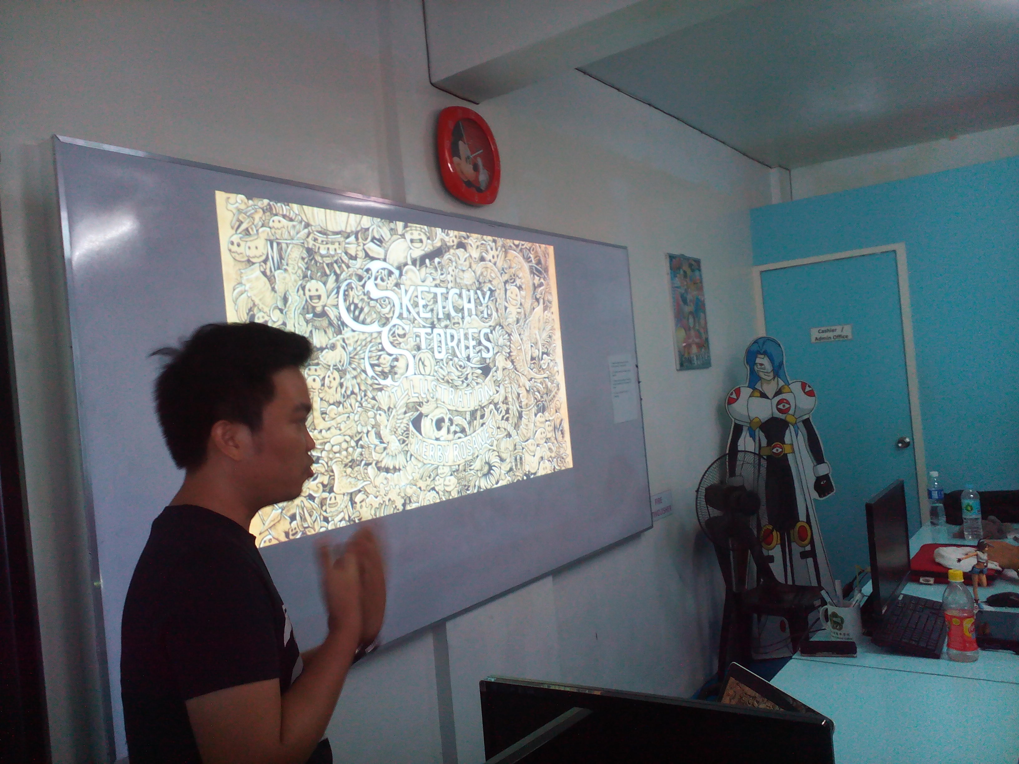 Kerby is currently working on a book (2 volumes) about doodles that is funded abroad. It will be sold internationally first before being sold to the country via Powerbooks and other book stores. His work is mostly for foreign clients and has limited clients here. One time a friend of his congratulated him for having T-shirts designed by him being sold in some SM branches; Kerby said he has no T-shirt designed for the local market. Some local businessman is copying his work illegally – Ouch again!