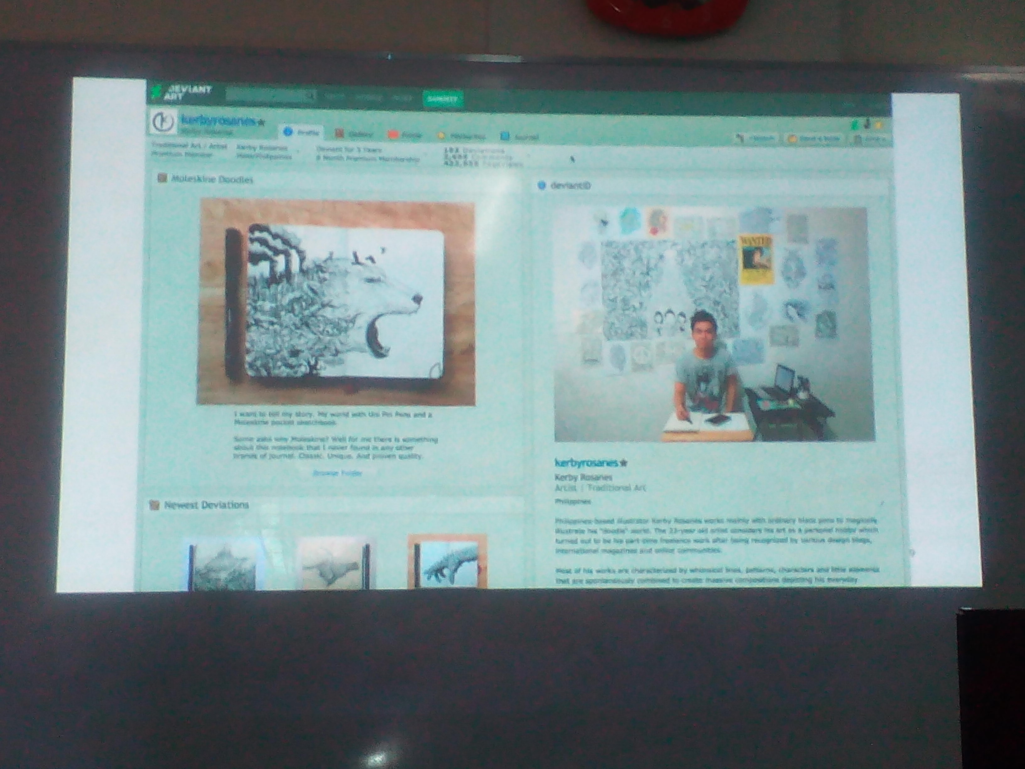 Kerby also puts his artwork at a site where he gets royalties for his work that are used in T-shirts, mugs, bags, pillows, jackets, phone cases etc. the royalties pays for his utilities. He also uses tags, an example is where he uses a P1,000 sketch pad and ties it up with Moleskin – the company that produces it. Many artists hate him for promoting the expensive sketch pad, but after sometime the Italian company for the sketch pad commissioned him to do a sketch pad cover for them. Kerby now lives in a condominium somewhere in Metro Manila and he only started sometime in 2012.