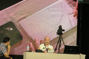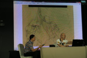 The workshop was suppose to start at 10:00 am and end about 12:00 pm but it was already 11:30 am before it started; since Mr. Wada stayed for the welcoming remarks at the Plenary Hall. I was not planning to stay at the workshop, since I am not an animator, I was just there to take some photos and write few sentences about it. I thought Mr. Wada was going to start the drawing workshop right away, but he talked about his past, works and Japanese animation which was very interesting so I stayed for the whole duration of the talk.