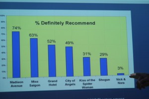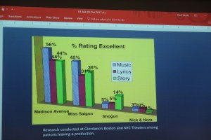 Paul then proceeded to pitch his string of plays such as ‘Oh Johnny’, ‘Madison Avenue’and other plays. Being 20 years in market research, he showed some figures that Madison Avenue has great reviews from both critics and audiences alike. He continued to explain the character, about the surprising plot and remastering the sound to make it up to date and recorded the dialogue for the animation project. Paul also talked about Gary Cherpakov, who was the brilliant music and lyrics writer for his plays. Paul was all praised for Gary whom nothing was hard for him to write, as it all came naturally to him and the work could be done perfectly in a day or two. Instead of using rhyming words, Gary was more on rhyming the sounds, and in Paul’s opinion ‘Oh Johnny’ is one of the top five best musicals.