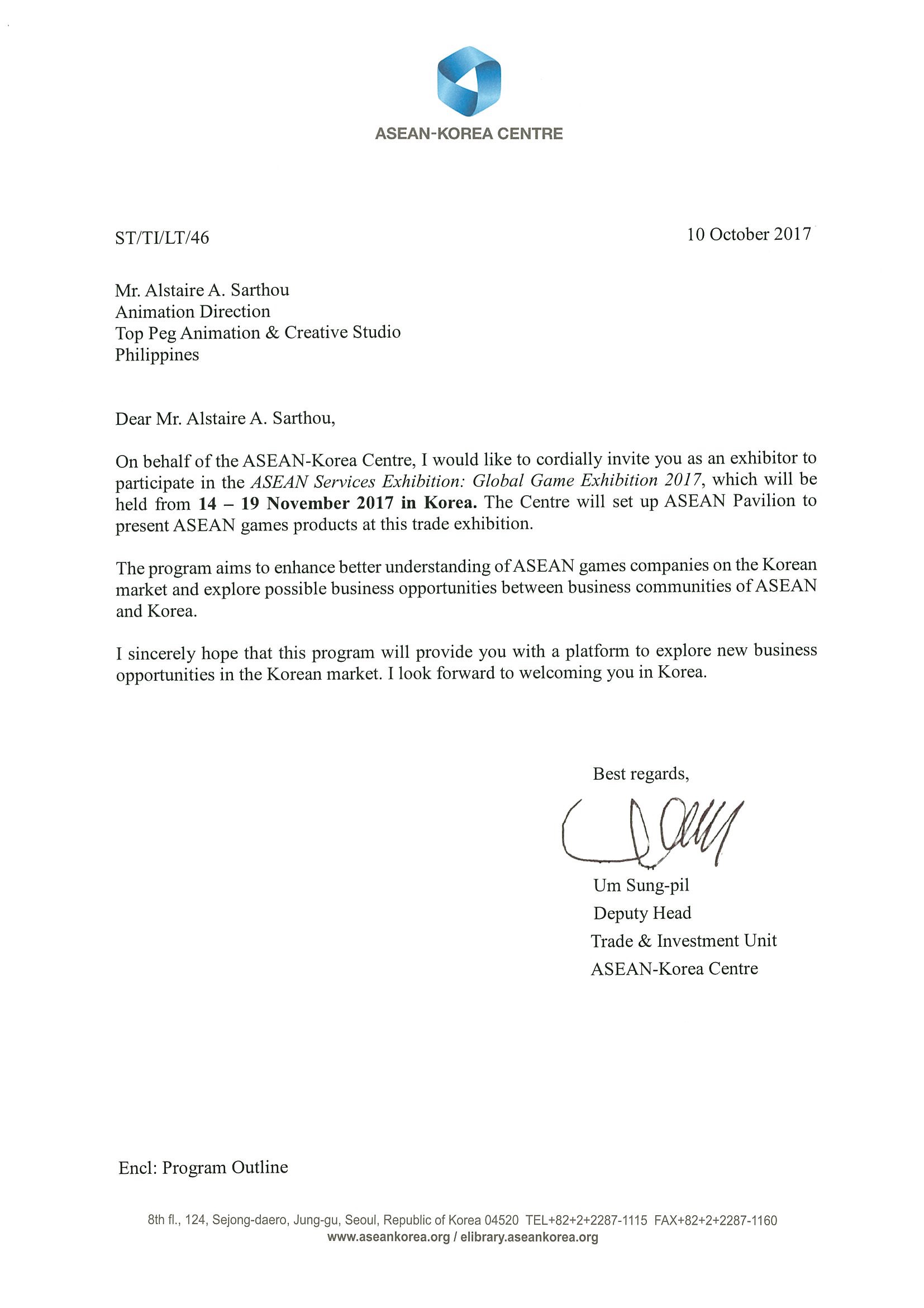 Last July 26, 2017, we received an email from the Animation Council of the Philippines, that Ms. Tess S. Loring, Chief Services Division of DTI-EMB (Department of Trade and Industry – Export Marketing Bureau) together with PTIC (Philippine Trade and Investment Center) Seoul through their Commercial Counselor, Mr. Emmanuel W. Ang, were seeking companies interested to participate in G-Star 2017, Busan, South Korea.