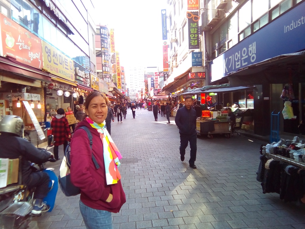 I then took Edith to the subway 10:30 am because she had a different flight and she needed to take the train back to Incheon. The rest of us would take a connecting flight from Busan airport to Incheon airport. The road to the subway led us to a strip with lots of restaurants and some tourist spots.
