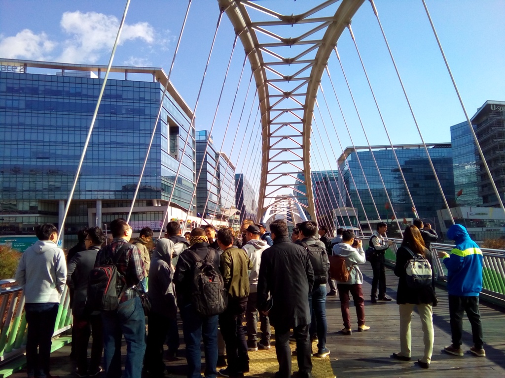 He then showed us the other buildings that included an animation and game studio. The buildings all looked alike and there were no signs. It was really freezing but he invited us to a bridge that crosses a creek in the valley. All the delegates were not comfortable with the cold weather but we were able to take a few snapshots.