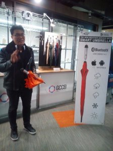 And they showed us different devices that they came up with like the Smart Umbrella. This umbrella has a built-in barometer so it can communicate with your mobile phone to show how the weather will be, including temperature, humidity and wind velocity.