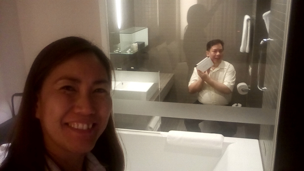 Our room was simple but had moving dividers that expose a glass window to the bathroom. It also had an advance remote control for the toilet. This time I took pictures. What was funny was that there was an emergency button beside the remote, maybe when you run out of batteries.