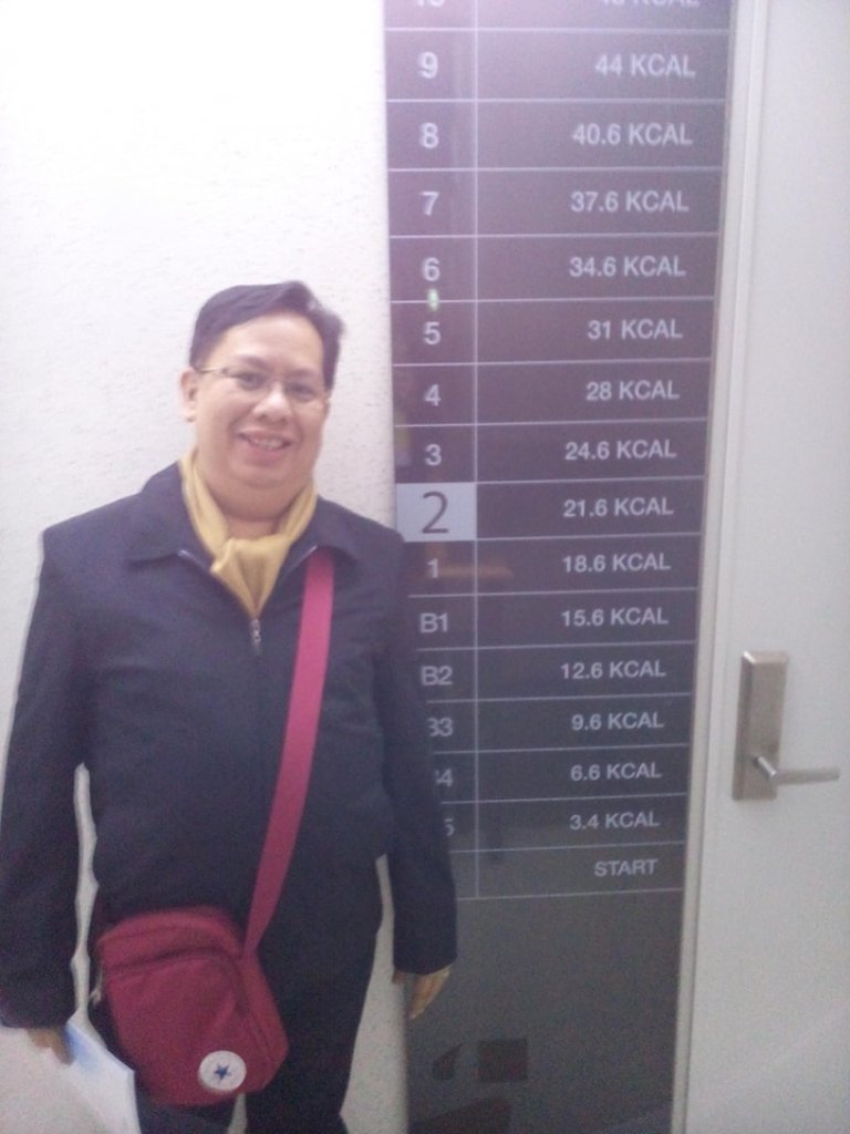 Going down they made us take the stairs. It was cool that the calories that you burn are shown on the stairwell.