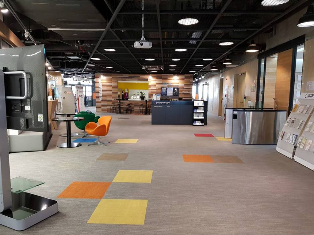 At the Gyeonggi Center for Creative Economy & Innovation, outside the buildings looked like typical office buildings, simple architecture and all gray with glass. Inside though, it looked like modern creative offices such as Google. They had Cargo containers converted into modular offices, colorful floors and furniture.