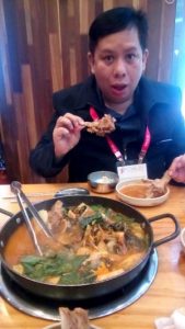 We saw that the people there were eating a hot pot of pork ribs and veggies, unfortunately, the menu was in Korean. We saw a picture with small, medium and large sizes. Thinking that the people eating there ordered the small size, we thought of ordering a medium then splitting it between ourselves. When our food arrived, we were surprised at the size of the hot pot. We ordered the group meal instead of the solo meal. It had 7 slabs of pork ribs and lots of veggies. We messaged the other delegates and told them our problem, that we mistakenly ordered and we could not finish it alone. But they already have eaten their lunch, so we just ate what we could. The medium size meal cost around P1,400 instead of the P380 for the solo meal.