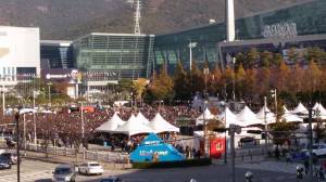 5:30 pm– It was a bit traffic, so we arrived 30 minutes later than our schedule. Busan was less cold than Seoul at 10 degrees Celsius but still cold, it was like San Francisco – a bay area. We took another bus to the Busan Exhibition & Convention Center or BEXCO, for the ingress.