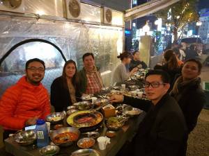 At dinner time around 7:00 pm, we were invited by Mr. Emman Ang for an authentic Korean barbecue about two blocks away from our hotel. We went to this restaurant where the parking lot doubles as an outdoor dining area where we seated behind the cars.