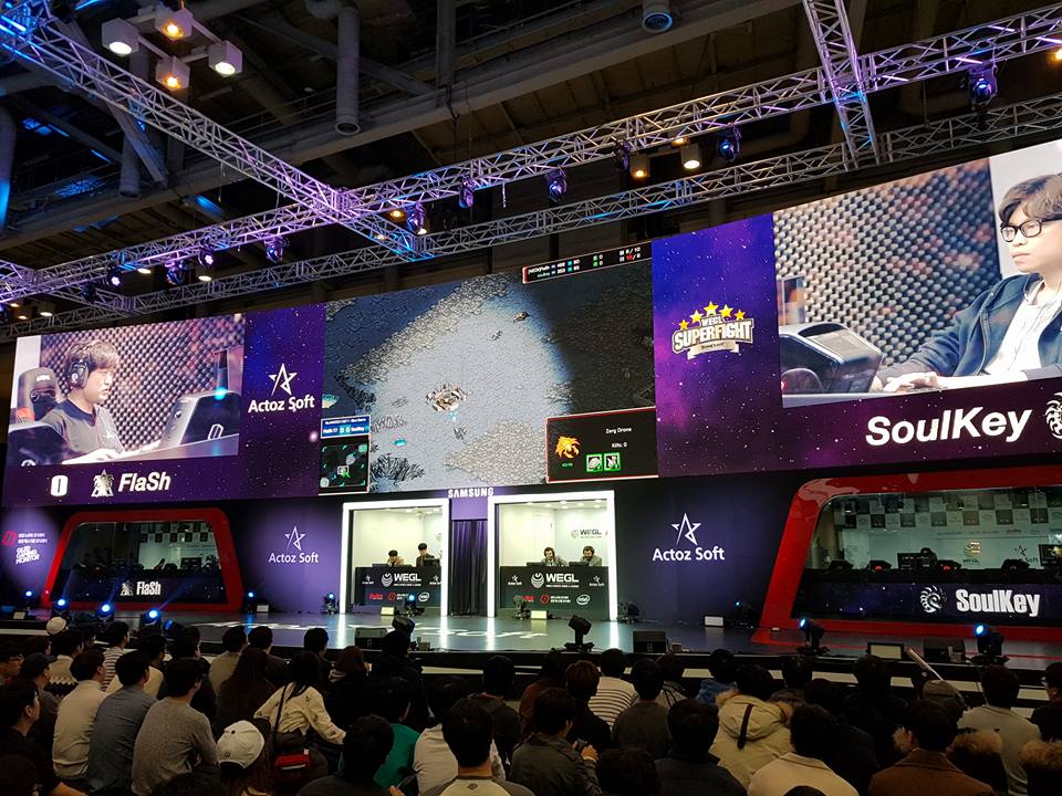 The highlight of G-Star is the eSports. These are games where a lot of players compete with each other until there are only 2 players left who compete for the grand prize. This is similar to the format of the ESGS, where there are a number of eSport games, like FIFA Online, which is a soccer game, Battlegrounds, Icarus and Starcraft.
