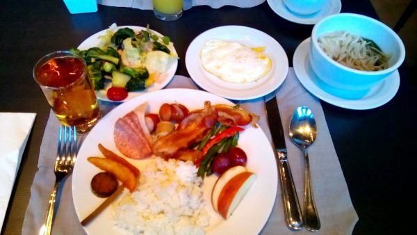 I tried the breakfast buffet at Shilla Stay Hotel, and it was the typical breakfast buffet Korean style. There was an egg station, bread station, ramen station, bacon and cold cuts, and roasted veggies, plus coffee, juices, and tea.