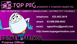 When I designed the backdrop for Top Peg, I decided to place Korean translations. Since it was suggested by the DTI -EMB that our calling cards have a translation, then why not our backdrop too. I used Google Translate to do the translations. I had a cousin, who works for a Korean-English School, who had her boss check the translations. Her boss said I made a mistake on the word “CROP”, my version meant “To Cut”, instead of “vegetation”.