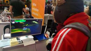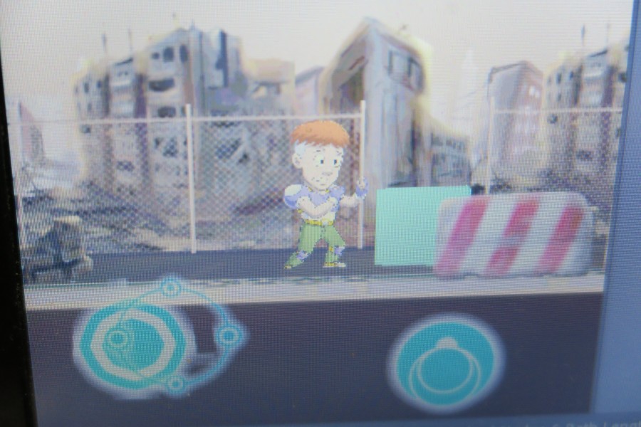 At ESGS, we learned that showing the game through a cellphone wasn’t attractive to the people going around the exhibit. So we planned on connecting the cellphone ,with the game installed, to a 40″ LED TV. I found some HDMI adapters online and ordered them immediately.  Unfortunately, they did not function as advertised, so we had to have a backup plan. Jap packaged the game for PC use, and we installed it in a notebook computer. The notebook was then connected to the TV, also a game controller was installed so that the gamers could play comfortably.  I also had Jap remove the visual buttons on the screen  so there would be no distraction of giant buttons on the big screen TV.