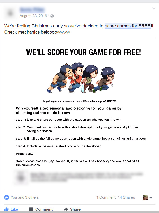 In our mobile game project, a sound and music firm promised to do our sound effects and music for free as their promo for us winning a mobile game sample but they never did make good on their promise. In these cases, I did not even give them the benefit of a doubt as based on our experiences it is impossible to find the right talent without them having a formal platform and track record – most are fakes. In the creative business, it takes more than just one take to deliver the right sketch, sound, song etc., so it is highly unlikely that the tryouts will be able to persist with many takes even if they have the talent to deliver what we want.