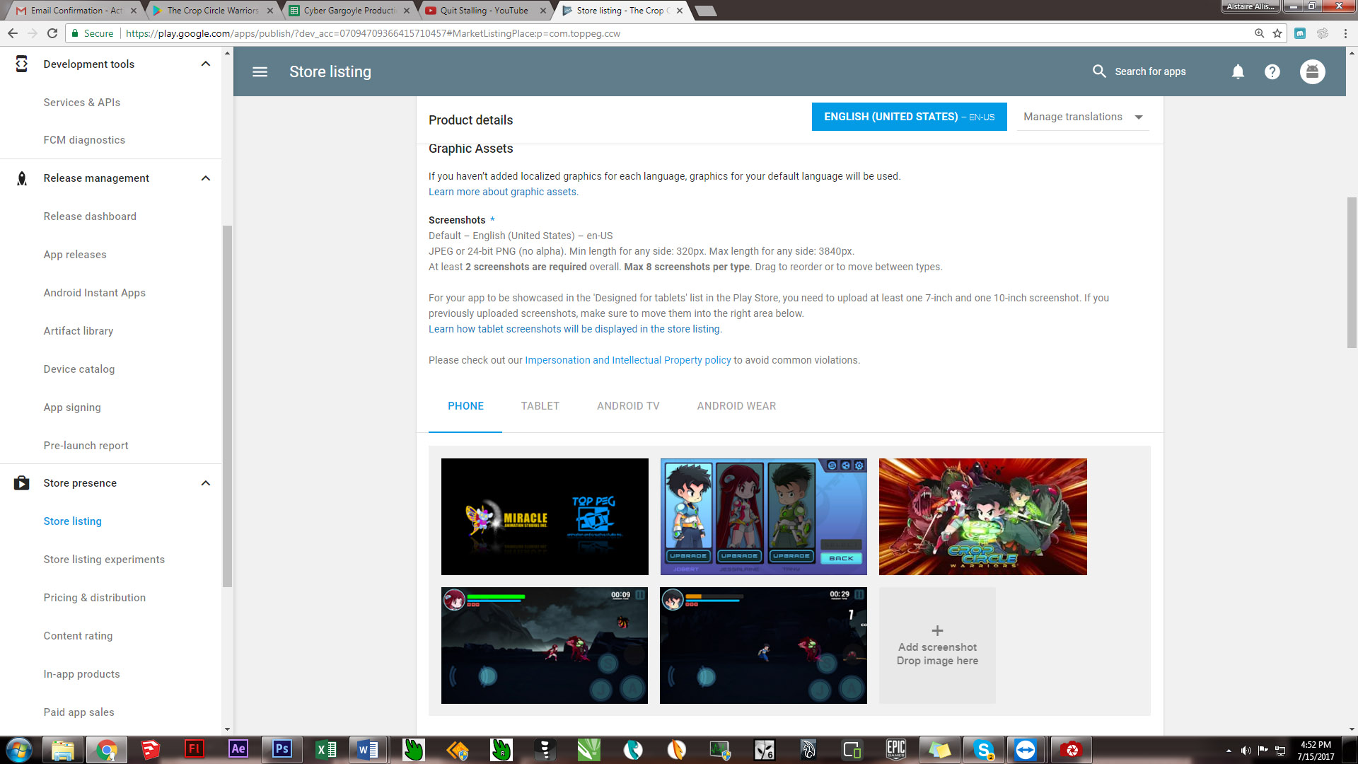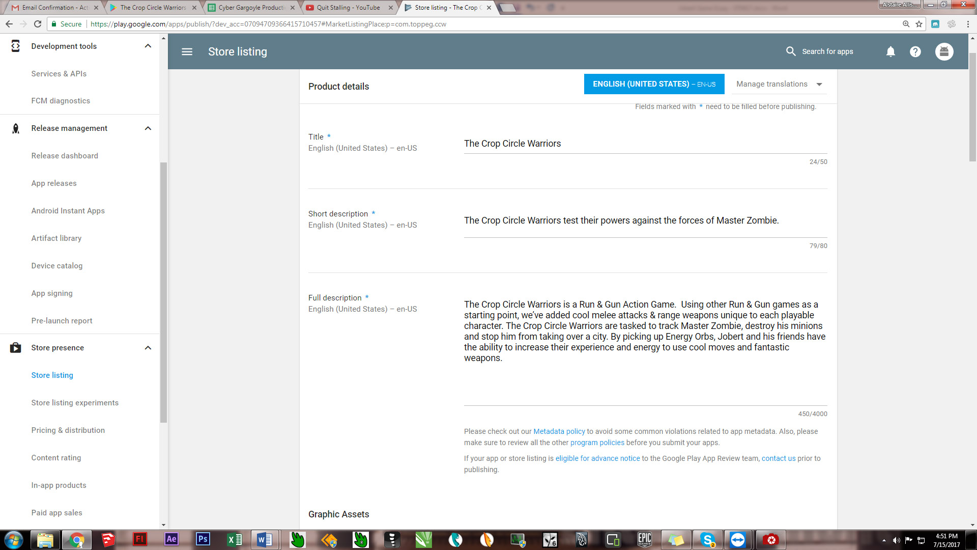 Google Play has a built-in link to a translation app, I was going to have our store translated, but I learned that some languages had a minimum number of words for a certain price. So I needed to gather all words in the game that need translating so that we meet the minimum words for the value of translation.  We edited the introduction, narrative in the game and included the music video lyrics for translation sometime in early October 2017.  We will test these languages first before adding more. After two weeks of sending the narrative with images, they requested for the screenshots of other areas not given to them like the Moleth’s lab, achievements page, setting, and credits.